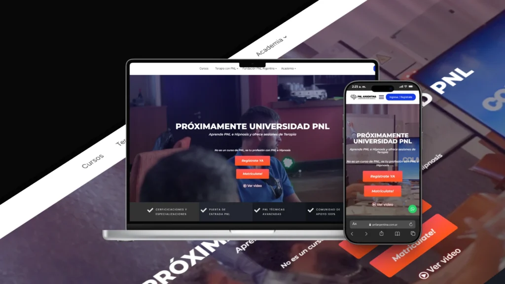 Landing y e-commerce de cursos de PNL que conecta estudiantes de todo el país con formaciones online y contenido transformador.